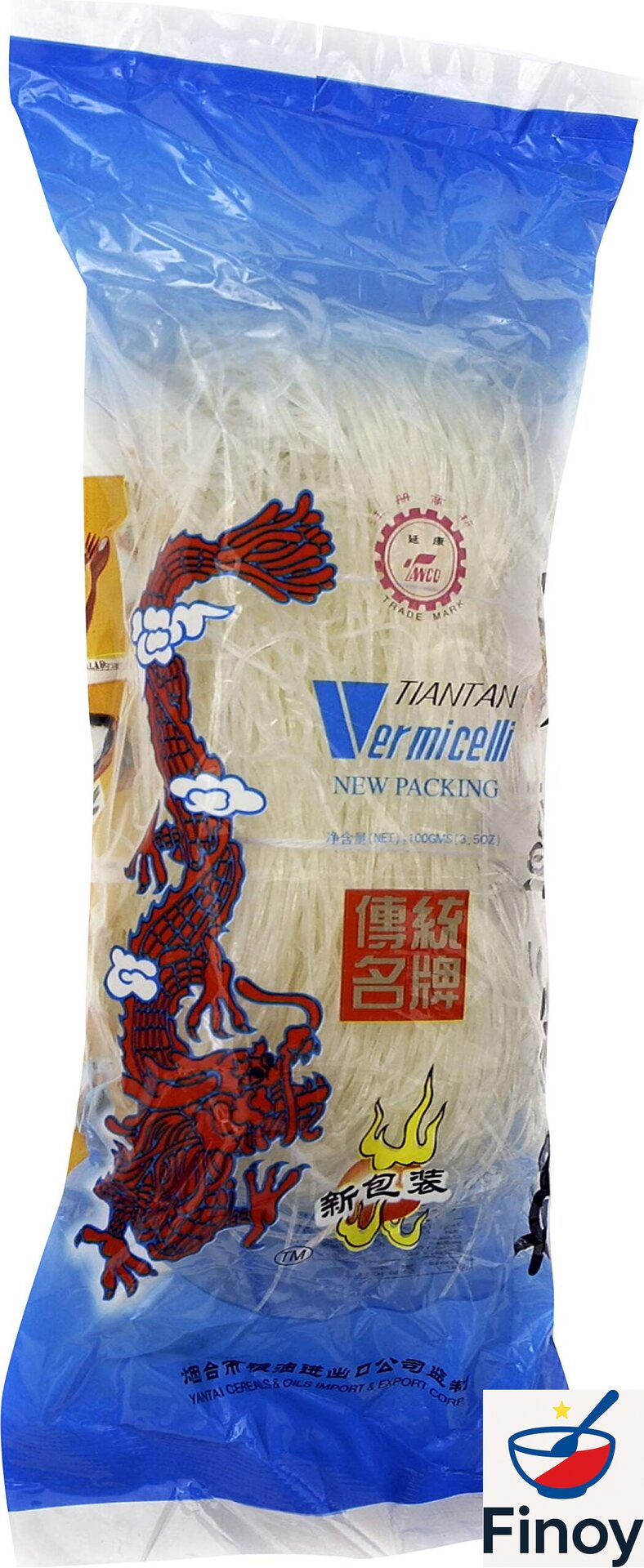 Tiantan vermicelli on valmistettu hyvälaatuisesta herne- ja maissitärkkelyksestä. Ei sisällä kemiallisia lisäaineita. Keitä 3–4 minuuttia.